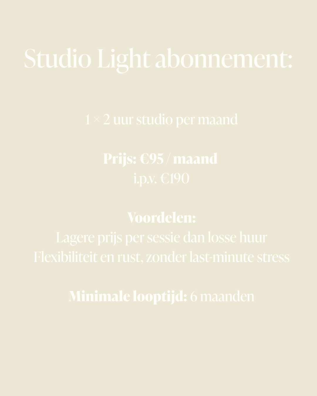 Hou je van een mooie, rustige, eigentijdse locatie om foto’s te maken, te werken, mensen te ontvangen? Het kan allemaal in mijn daglichtstudio te Turnhout (Kempen). Een mooie ruimte van +/- 100m2, die geschikt is voor andere fotografen en ondernemers. Ideaal om shoots, coaching, workshops, meetings en andere… in te houden.